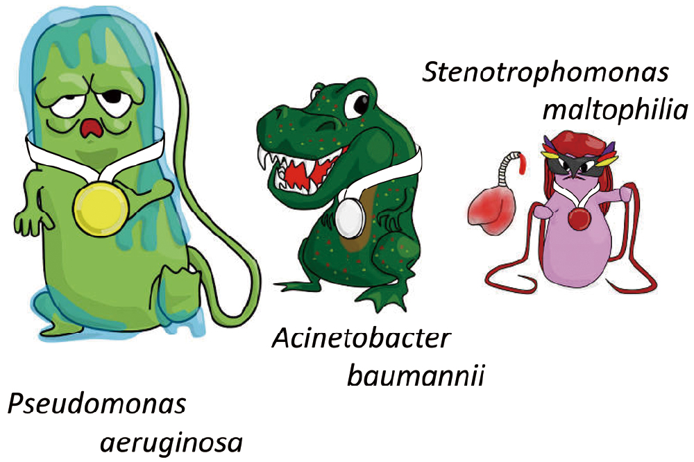 緑膿菌以外のモンスターについてもご紹介しておきます。アシネトバクターAcinetobacterとステノトロホモナスStenotrophomonas maltophiliaです(図4)。これらを勝手にモンスターズ・ビッグ3と呼んでいます。