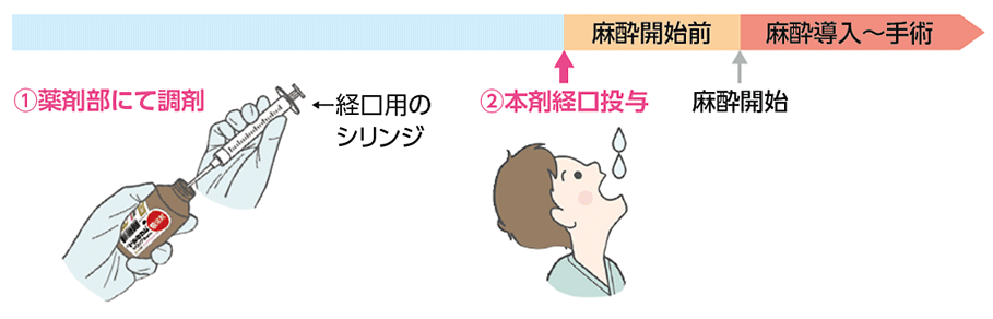通常、小児にはミダゾラムとして1回0.25~1.0mg/kg(最大用量20mg)を麻酔開始前に経口投与する。