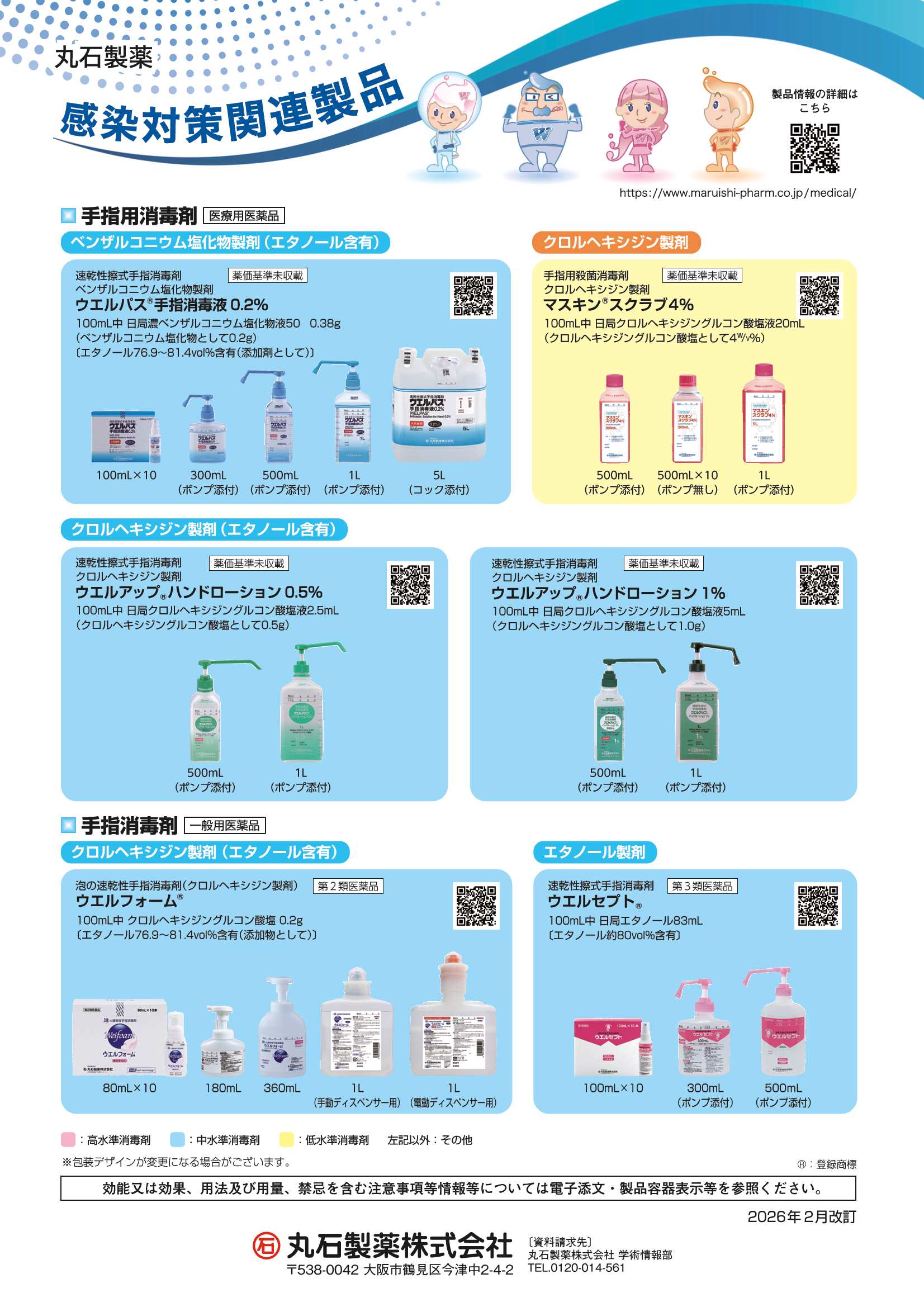 使用上の注意マスキン®液(5W/V%,20W/V%)、マスキン®R・エタノール液,マスキン®W・エタノール液、マスキン®スクラブ 4%、マスキン®水(0.02W/V%,0.05W/V%,0.1W/V%,0.5W/V%)、ウエルアップ®手指消毒液 0.2%、ウエルアップ®ハンドローション(0.5%,1%)、ウエルフォーム®、ワードケア®ハンドローション0.2% 使用上の注意改訂のお知らせ