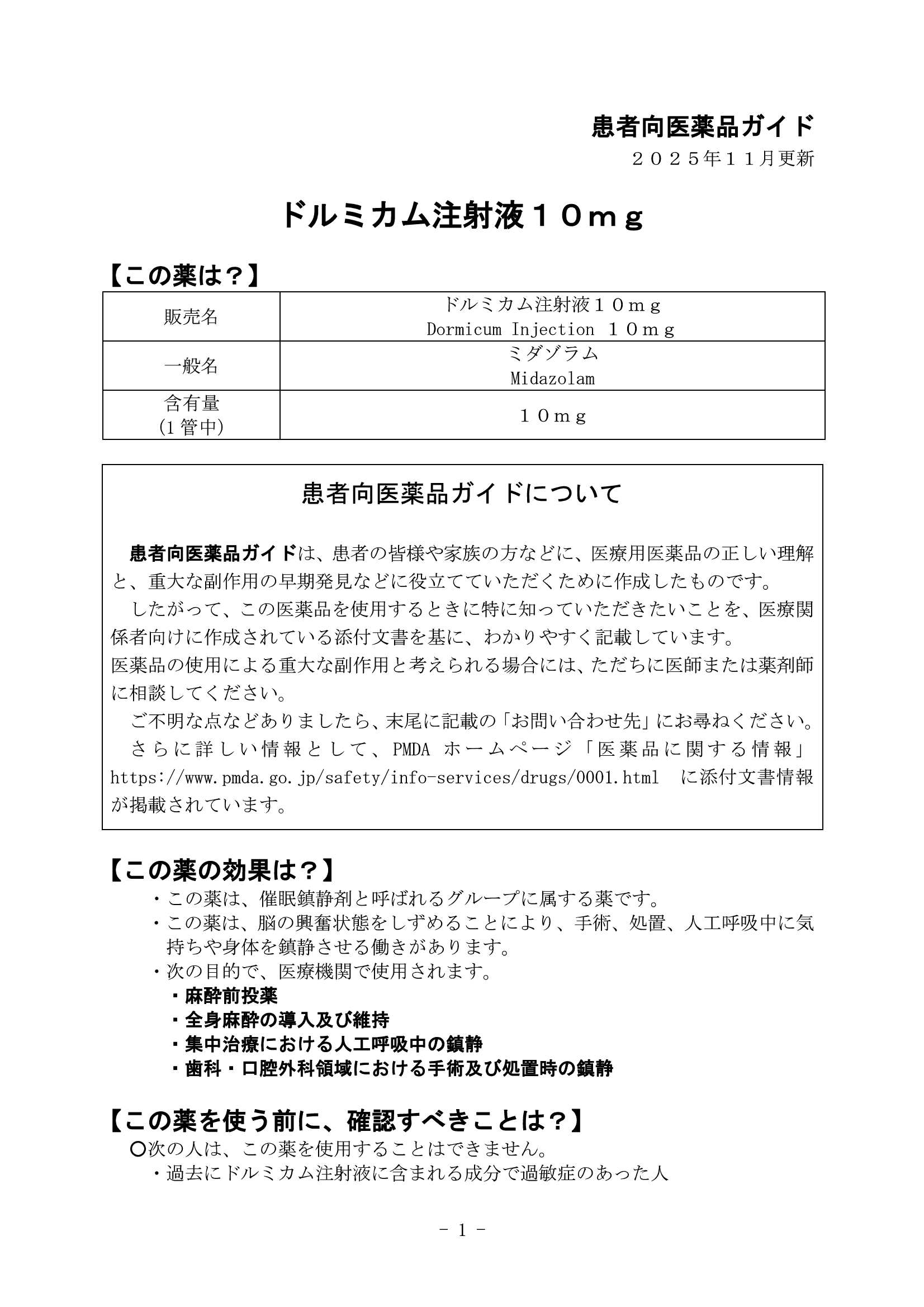 ドルミカム注射液 10mg患者向医薬品ガイド(2025年11月更新)