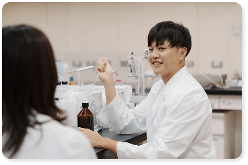 当社の魅力は、何と言っても「人」の良さです。殺伐とした雰囲気は一切なく、若手でものびのびと仕事に取り組める温かい社風があります。組織の規模感がちょうど良く、自分の意見が上長に届きやすいのも強みです。 また、仕事を進める上ではチームワークを大切にしています。スケジュール管理を徹底しつつ、会議で手が離せない時はメンバーに実験を代わってもらうなど、互いに協力し合う体制が自然と根付いています。