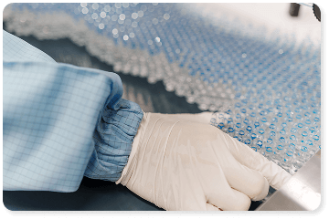 検査作業は目視と機械、包装作業は機械のみで行っています。