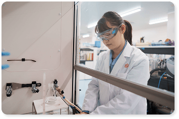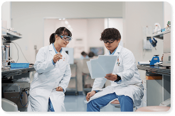 医薬品の品質管理担当として、製品が定められた基準を満たしているかをあらゆる角度から検査しています。 試験対象は、製品、原料、包装資材に加え、保管期間による品質変化を見る「安定性試験」などさまざまです。手法も、高度な分析機器を用いた理化学的な測定から、外観やにおいを確認する官能試験まで幅広く行います。 確かな品質を保証するためには、一つのミスも許されません。一つひとつの分析を正確に積み重ね、丸石製薬の信頼と安全性を技術面から支えています。
